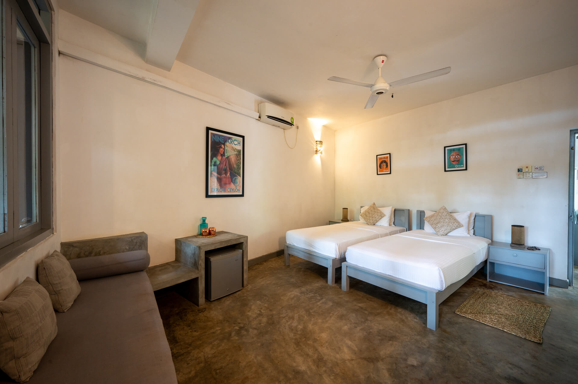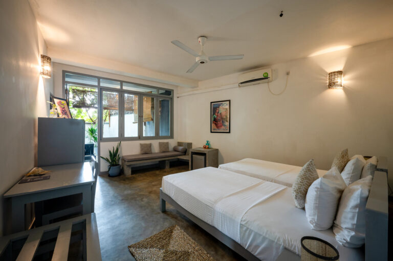 This ground-floor room features twin king Singles. A courtyard area provides space to read and relax in the privacy of your own surrounds. The room is Air Conditioned for those looking to escape the heat in the middle of the day or for a more comfortable night’s sleep. A day bed and sun loungers cater for those who wish to lay back and enjoy a good book.